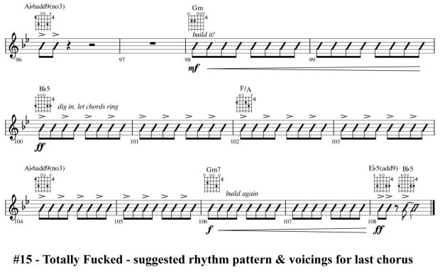 - m.98-108: for the final chorus I suggest a ringing eighth-note pattern throughout, accented on the beat, as shown below.